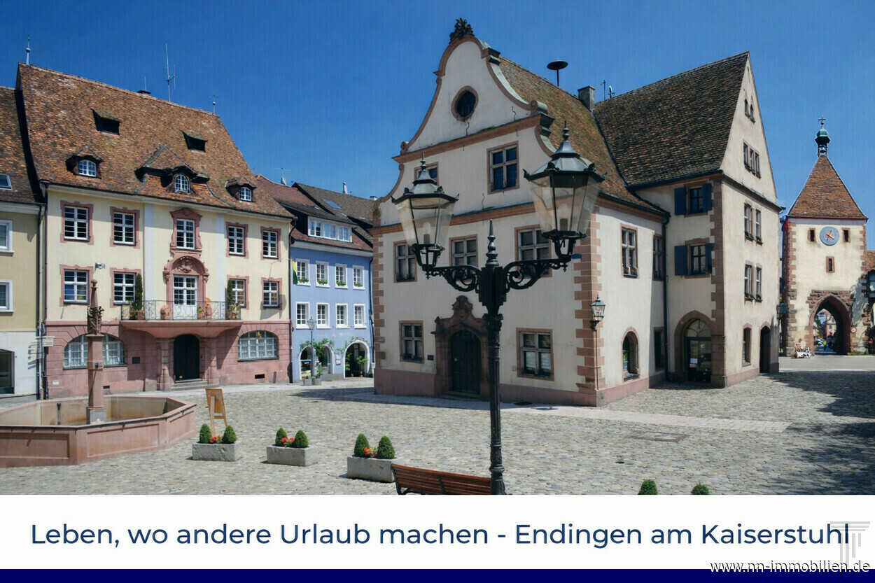 | Lage | Die Stadt Endingen am Kaiserstuhl gehört zu den beliebtesten Wohnorten der Region Baden. Eingebettet in eine der sonnenreichsten Landschaften Deutschlands bietet sie eine einzigartige Kombination aus Natur, Kultur und Lebensqualität. Die historische Altstadt mit ihren malerischen Gassen, Fachwerkhäusern und gemütlichen Plätzen verleiht Endingen einen besonderen Charme. Zahlreiche Veranstaltungen, Winzerfeste und eine ausgezeichnete Gastronomie prägen das lebendige Stadtbild. Gleichzeitig profitieren Bewohner von einer hervorragend ausgebauten Infrastruktur: + Einkaufsmöglichkeiten für den täglichen Bedarf + Schulen und Kindergärten vor Ort + vielfältige Freizeit- und Sportangebote + sehr gute Verkehrsanbindungen nach Freiburg, Basel und Straßburg Hier verbinden sich Natur, Genuss und urbanes Leben zu einem besonderen Wohngefühl. |