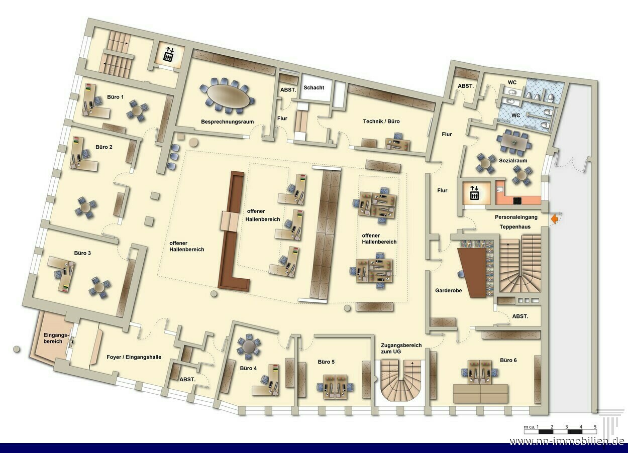 | Beschreibung | Entdecken Sie die vielfältigen Möglichkeiten dieses ehemaligen Bankgebäudes, das sich perfekt für repräsentative und vielseitig nutzbare Gewerbeflächen eignet. Direkt am Beginn der belebten Fußgängerzone von Lörrach gelegen, profitieren Sie hier von einer erstklassigen zentralen Lage und großzügigen Raumaufteilungen. Die gepflegte Ausstattung und die flexible Nutzung dieser Immobilie machen sie besonders attraktiv für eine breite Palette an Branchen. Nutzen Sie das Potenzial dieser einmaligen Lage und gestalten Sie Ihre geschäftliche Zukunft in einem Gebäude, das Geschichte und Modernität vereint. Raumaufteilung und Ausstattung: ERDGESCHOSS (ca. 650 qm): - Offenes Foyer: Einladend und direkt zugänglich vom Eingang. - Großraumbüro: Helle, lichtdurchflutete Schalterhalle, ideal für offene Arbeitsbereiche oder Empfangszonen. - Einzelbüros: Sechs separate Büroräume bieten Platz für konzentriertes Arbeiten. - Besprechungsraum: Geeignet für Meetings und Konferenzen. - Technikraum: Bereit für IT- und Kommunikationstechnik. - Sozialraum mit Küche: Für Pausen und Verpflegung der Mitarbeiter. - Garderobenraum: Großzügig dimensioniert. - Sanitärräume: Ausreichend vorhanden. UNTERGESCHOSS (ca. 313 qm): - Flur-/Treppenbereich: Direkter Zugang zu den Räumen. - Tresorraum: Großzügig und sicher, mit Schließfächern. - Lagerräume: Zwei zusätzliche Räume für Lagerzwecke. - Zusätzliche Kellerräume, wie Archiv: Optional anmietbar für Dokumentenlagerung. Ausstattung und Zustand - Fensterfront: Großartige Fensterfront bietet bestmögliche Präsentationsmöglichkeiten mit optimalem Lichteinfall durch großzügige Fenster. - Böden: Teppichboden in allen Räumen. - Beleuchtung: Moderne Deckenbeleuchtung, Sonnenschutz an den Fenstern. - Klimatisierung: Teilweise klimatisierte Räume. - Flexibilität: Raumaufteilung und Innenausstattung sind flexibel anpassbar. NUTZUNGSMÖGLICHKEITEN: Das Gebäude eignet sich hervorragend für diverse Nutzungsarten: - Arztpraxen: Bis zu 14 Behandlungszimmer möglich. - Sicherheitsfirmen: Ideale Sicherheitsausstattung vorhanden. - Architekturbüros: Flexible Raumaufteilung und Repräsentationsmöglichkeiten. - Banken und Versicherungen: Optimale Nachfolge als Finanzinstitut. - Agenturen und Co-Working Spaces: Moderne und offene Arbeitsbereiche möglich. Falls Sie jedoch andere Konzepte, Ideen und Dienstleistungen haben, können Sie uns gerne per E-Mail kontaktieren. In der ehemaligen Privatbank können zudem Veranstaltungen durchgeführt werden und Laufkundschaft kann repräsentativ empfangen werden. Anmerkungen: Sonderwünsche bezüglich der Ausstattung oder Anregungen für die Planung für den Innenausbau nach den eigenen Bedürfnissen können berücksichtigt werden und sind Verhandlungssache. Staffelmiete: Im ersten Jahr beträgt die monatliche Kaltmiete 3.000 Euro, im zweiten Jahr 5.000 Euro, im dritten Jahr 7.000 Euro und ab dem vierten Jahr 9.000 Euro. Die Mietpreise verstehen sich als Nettomietpreise zuzüglich Betriebs- und Nebenkosten. Eine Mehrwertsteuer wird nicht erhoben. Die Anmietung dieser Gewerbefläche erfolgt für den Mieter provisionsfrei. Ein Provisionsanspruch gegenüber dem Mieter besteht nicht. Energieausweis: Kein Energieausweis vorhanden (in Vorbereitung). Ihre neue, repräsentative Geschäftsadresse ist Ihre Visitenkarte zum Erfolg! Für weitere Informationen und zur Vereinbarung eines Besichtigungstermins stehen wir Ihnen gerne zur Verfügung. Nutzen Sie diese einmalige Gelegenheit, um Ihr Unternehmen in einer repräsentativen und zentralen Lage von Lörrach zu etablieren. Weitere interessante Miet- und Kaufangebote finden Sie unter: www.nn-immobilien.de. |