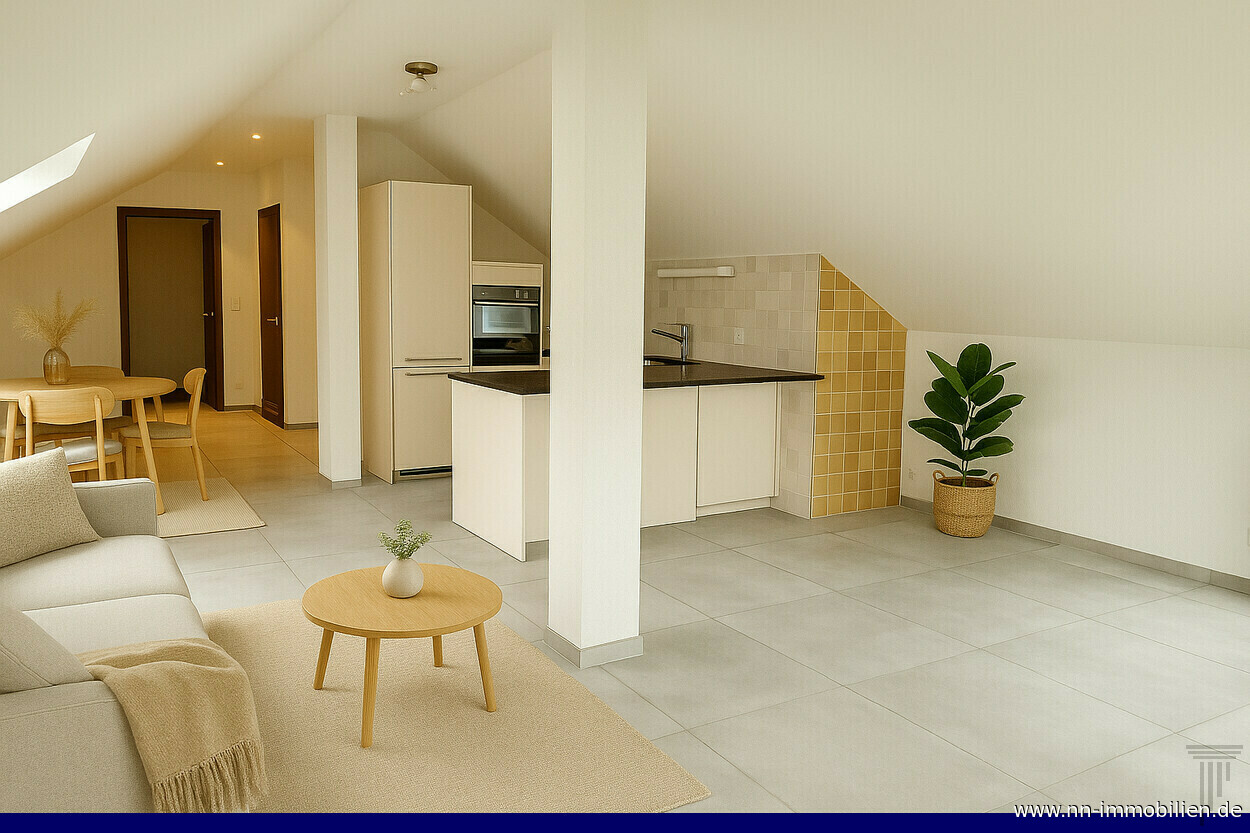 | Beschreibung | Diese helle Dachgeschosswohnung überzeugt durch ihre großzügige Raumaufteilung, moderne Ausstattung und ihr besonderes Wohnflair. Charakteristische Dachschrägen und große Fensterflächen schaffen eine freundliche Atmosphäre und sorgen für viel Tageslicht. Der offene Wohn- und Essbereich mit moderner Einbauküche und großzügiger Arbeitsfläche bildet das Herzstück der Wohnung. Hier lässt es sich sowohl gemütlich wohnen als auch Gäste empfangen. Das Schlafzimmer ist mit hochwertigem Parkettboden ausgestattet und bietet dank des großen Dachfensters eine helle und wohnliche Atmosphäre. Das moderne Badezimmer verfügt über eine Badewanne, WC und Waschbecken. Zusätzlich steht ein separater Raum für Waschmaschine und Trockner zur Verfügung – ideal für zusätzlichen Komfort im Alltag. AUSSTATTUNG: + Offener Wohn- und Essbereich + Moderne Einbauküche mit hochwertigen Geräten + Tageslichtbad mit Badewanne, WC und Waschbecken + Separater Raum mit Waschmaschine und Trockner + Schlafzimmer mit Parkettboden und großem Dachfenster + Großformatige Feinsteinzeugplatten in Wohn- und Nassräumen + Eigenes Kellerabteil Zur Wohnung gehört ein separates Kellerabteil. Zudem können auf dem Klosterparkplatz Parkkarten für CHF 50.– pro Auto und Monat erworben werden. Ein zusätzlicher Pluspunkt ist das neu eröffnete Fitnessstudio im Haus – ideal für alle, die Gesundheit, Bewegung und Wohnen clever kombinieren möchten. „kein Energieausweis vorhanden" (in Vorbereitung)" Weitere interessante Miet- und Kaufangebote finden Sie unter: www.nn-immobilien.de |
