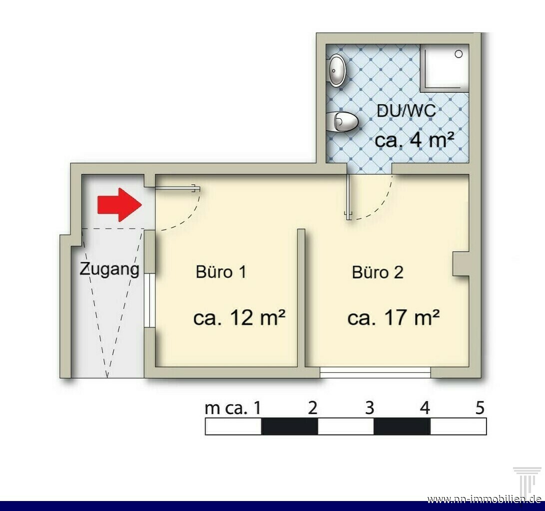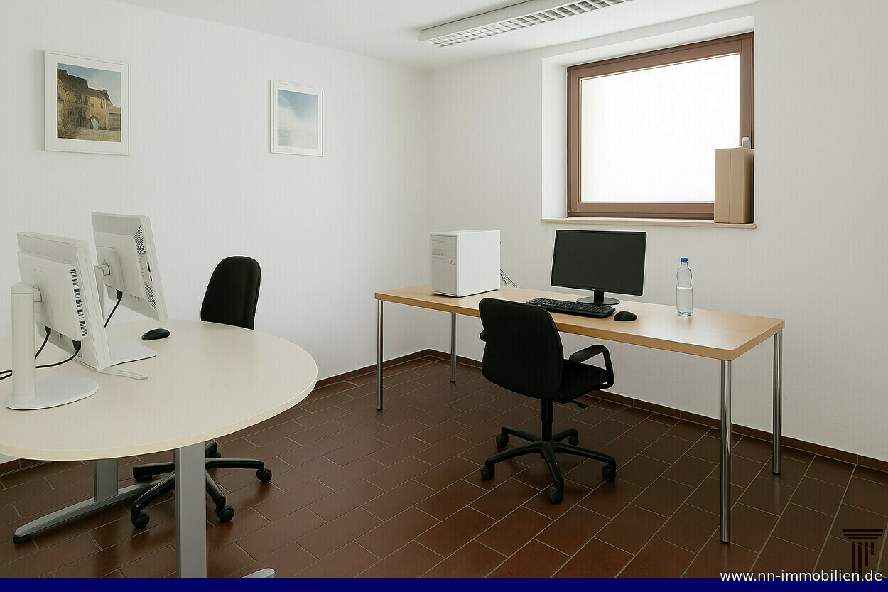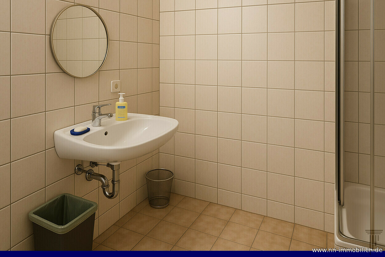 | Beschreibung | Diese gepflegte und funktional geschnittene Gewerbeeinheit im Untergeschoss bietet eine Nutzfläche von ca. 33 m² und eignet sich ideal für Büro-, Dienstleistungs- oder Handwerksbetriebe mit überschaubarem Flächenbedarf. Die Einheit überzeugt durch eine durchdachte Raumaufteilung, einen eigenständigen Zugang sowie ein sehr gutes Preis-Leistungs-Verhältnis. Die Fläche gliedert sich in zwei nutzbare Büromöglichkeiten mit ca. 12 m² und 17 m², die jeweils über Tageslichteinfall verfügen und flexibel möbliert werden können. Ergänzt wird das Raumangebot durch ein Duschbad mit WC und Waschmaschinenanschluss. Ein Küchenanschluss ist vorhanden, die Ausstattung mit einer Single-Küche kann durch den zukünftigen Mieter erfolgen. Der separate Außenzugang über eine Treppe, unabhängig vom öffentlichen Treppenhaus, ermöglicht einen diskreten und störungsfreien Betriebsablauf. Bei zusätzlichem Platzbedarf besteht die Option zur Anmietung weiterer Lagerräume im Untergeschoss, die sich ideal als Material-, Waren- oder Aktenlager eignen. Ein Außenstellplatz rundet dieses Angebot sinnvoll ab. AUSSTATTUNG UND RAUMAUFTEILUNG - Zwei helle Büroräume mit Fenster und guter Stellfläche - Funktionales Duschbad mit WC und Waschmaschinenanschluss - Küchenanschluss (Single-Küche optional durch Mieter) - Separater, unabhängiger Zugang über Außentreppe - Pflegeleichte Fliesen- und Bodenbeläge - Solide und gepflegte Gebäudesubstanz - Separater Außenstellplatz - Optionale Anmietung zusätzlicher Lagerflächen im UG NUTZUNGSMÖGLICHKEITEN - Büronutzung für kleine und mittelständische Unternehmen - Dienstleistungsbetriebe - Beratungs- oder Projektbüros - Praxisnahe Dienstleistungen (z. B. Massage- oder Wellnessanwendungen), vorbehaltlich der behördlichen Genehmigung BESONDERHEITEN: Die angegebenen Mietpreise verstehen sich als Nettomietpreise, jeweils zuzüglich Betriebs- und Nebenkosten. Es werden Mietverträge mit einer Laufzeit von 3 bis 5 Jahren angestrebt. Die tatsächliche Vertragslaufzeit ist verhandelbar. Die Maklerprovision entsteht gemäß § 652 BGB mit Abschluss eines wirksamen Mietvertrages und ist zu diesem Zeitpunkt verdient und fällig. Ein Anspruch besteht auch bei wirtschaftlich gleichwertigem Vertragsabschluss. Die Abbildungen – einschließlich der dargestellten Möblierung – können digital bearbeitet oder KI-gestützt visualisiert sein und dienen ausschließlich der Veranschaulichung. Haben wir Ihr Interesse geweckt? Kontaktieren Sie uns gerne über das Immobilienportal und teilen Sie uns Ihre geplante Nutzung mit. Wir freuen uns auf Ihre Anfrage! Weitere attraktive Miet- und Kaufangebote finden Sie auf unserer Website: www.nn-immobilien.de |